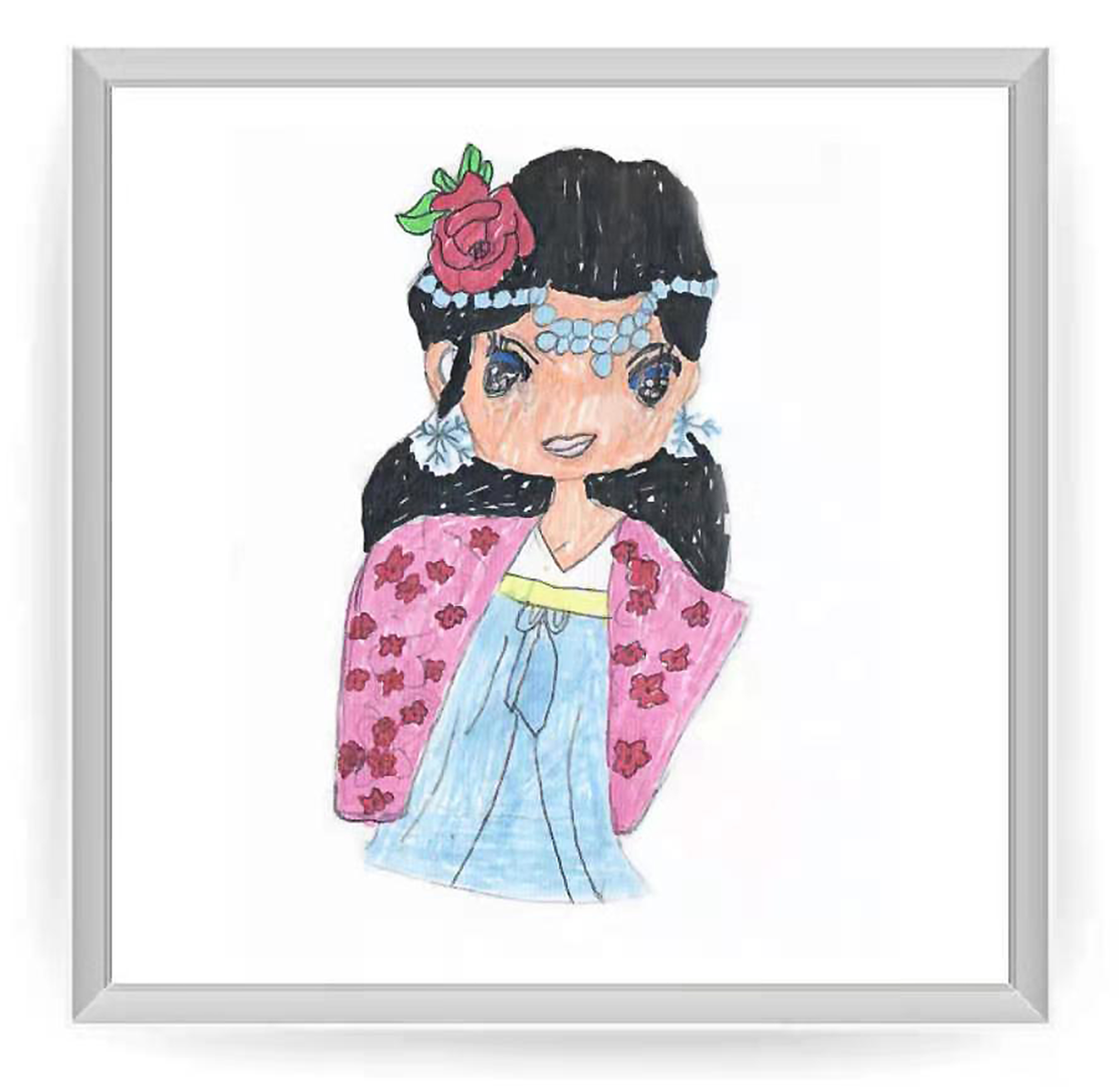Eva YAO 9岁,初学,线上儿童绘画启蒙课课堂作品 Eva YAO 9 Ans, Débutant, Dessin Réalisé Dans Le Cours En Ligne